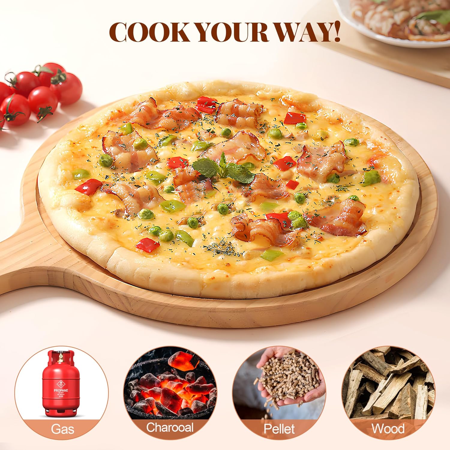 Fire it up with wood or charcoal straight out of the box and enjoy that classic, smoky wood-fired flavor. Transform your backyard into a true pizzeria! This versatile oven isn’t just for pizza—it’s perfect for baking bread, grilling meats, and preparing a variety of delicious dishes.