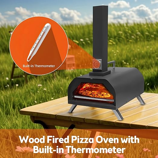 Effortlessly monitor the heat level with the built-in thermometer perfect for beginners. Simply preheat the oven for 15 minutes to reach 750°F (400°C), and enjoy a perfectly baked, delicious pizza in just 90 seconds.