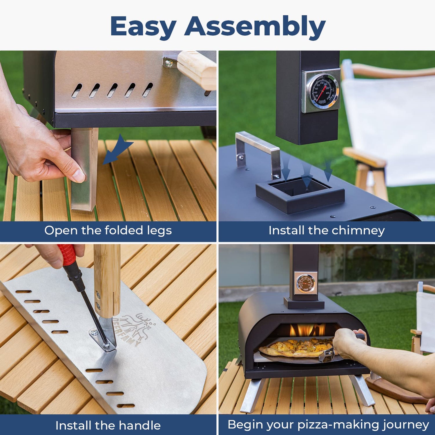 Setting up the pizza oven is quick and hassle-free. With clear instructions and minimal parts, you can have it fully assembled and ready to use in just minutes—no special tools or expertise required. Perfect for beginners and outdoor cooking enthusiasts alike.